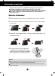 Monitoriaus prijungimas Prie‰ pastatant monitori˜, ∞sitikinkite, kad aparato, kompiuterio sistemos ir papildomos aparatros maitinimai yra i‰jungti. Jei monitori˜ dòsite ant stalo pavir‰iaus, montuokite j∞ su i‰lankstytu stovu, o jei montuosite j∞ prie sieninòs plok‰tòs, montuokite j∞ su sulankstytu stovu. Stovelio atlenkimas 1. Monitori˜ padòkite ekranu Ïemyn ant pagalvòlòs arba mink‰to skuduròlio. 2. Laikykite stovà uÏ pagrindo ir kelkite j∞ tokia eilòs tvarka, kaip nurodyta paveikslòlyje. 3.