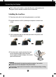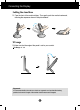Installing the Wall mount plate This monitor satisfies the specifications of the Wall mount plate or the interchange device. 1. Place the monitor with its front facing downward on a soft cloth or a cushion. Gently hold Cover Hinge Cap with hands as shown in the picture. Then, lift it up and separate from the body. 1 2 1 2 1 2 Cover Hinge Cap 2. Separate the stand base by using a screwdriver. 3. Install the Wall mount plate.