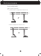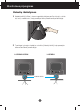 Monitoriaus prijungimas Prie‰ pastatant monitori˜, ∞sitikinkite, kad aparato, kompiuterio sistemos ir papildomos aparatros maitinimai yra i‰jungti. Stovelio atlenkimas 1. Monitori˜ padòkite ekranu Ïemyn ant pagalvòlòs arba mink‰to skuduròlio. 2. Laikykite stovà uÏ pagrindo ir kelkite j∞ tokia eilòs tvarka, kaip nurodyta paveikslòlyje. 3. Patraukite stovo pagrindà Ïemyn iki ta‰ko, nurodyto paveikslòlyje - taip i‰lankstysite stovà. 4.
