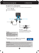 Monitoriaus prijungimas Stovelio sulenkimas 1. Monitori˜ pastatykite taip, kad ekranas bt˜ nukreiptas ∞ jus ir atlenkite monitori˜ atgal, kaip parodyta Ïemiau iliustracijoje. Bkite rpestingi ir atlenkdami monitori˜ atgal, neprispauskite savo rank˜. Pavertimo riba 1. Øsitikinkite, kad panelis nustatytas patogiu kampu.