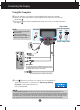 Connecting the speakers - The feature is only for speaker models - L204WTM Connecting the speaker 1. Place the monitor with its front facing downward on a soft cloth. 2. nsert the protruding hook of the speaker in the direction of the slot in the back of the product. Slot Hook Audio DC-In Cable AUDIO IN 3. After setting up the speaker, connect the Audio DC-In Cable to the back of the product.