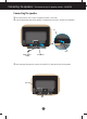 Installing the Wall mount plate This monitor satisfies the specifications of the Wall mount plate or the interchange device. 1. Put a cushion or soft cloth on a flat surface. 2. Place the monitor face down on the cushion or soft cloth. The Head part The Stand base part 3. Hold the product as it follows and lift up the Stand slightly. 4. Change your hold on the product as it follows and turn the Stand Base in the arrow direction. 5. Pull out the Stand to remove.
