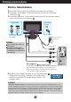 Displeja pievieno‰ana Datora izmanto‰ana 1. Novietojiet monitoru ïrtÇ, labi vïdinÇmÇ vietÇ netÇlu no jsu datora. 2. Pievienojiet signÇla kabeli. Pievienojot pievelciet skrves, lai nostiprinÇtu savienojumu. 1 3. Pievienojiet baro‰anas strÇvas kabeli pie atbilsto‰a, ïrti sasniedzama strÇvas izvada, kas atrodas tuvu displejam. 2 Baro‰anas kabelis SignÇlkabelis Var at‰˙irties atkar¥bÇ no mode∫a. PIEZ±ME Tas ir vienkÇr‰ots skats no aizmugures.