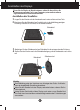 Anschließen des Displays So entfernen Sie den Ständer: 1. Legen Sie ein Kissen oder ein weiches 2. Tuch auf eine ebene Fläche. Legen Sie den Monitor flach auf das Kissen bzw. das weiche Tuch. Kopfteil Ständersockel 3. Halten Sie das Produkt wie abgebildet und heben Sie den Ständer leicht an. 4. Halten Sie das Produkt wie abgebildet und drehen Sie den Ständersockel in Pfeilrichtung 5. Ziehen Sie den Ständer heraus.