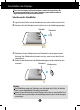 Anschließen des Displays Bevor Sie das Display in Betrieb nehmen, achten Sie darauf, dass die Stromversorgung zum Gerät, zum Computersystem und zu anderen angeschlossenen Geräten unterbrochen ist. Montieren des Standfußes 1. Legen Sie den Monitor mit der Vorderseite nach unten auf ein weiches Tuch. 2. Montieren Sie das Ständerteil am Produkt in der in der Abbildung gezeigten Gelenkteil Ständerteil 3. Befestigen Sie den Ständersockel am Ständerteil in der entsprechenden 4. Richtung.