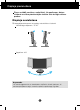 Displeja pievieno‰ana Pirms uzstÇd¥t monitoru, nodro‰iniet, lai monitoram, datora sistïmai un citÇm pievienotajÇm ier¥cïm tiktu izslïgta strÇvas padeve. Displeja novieto‰ana 1. Noregulïjiet ekrÇna paneli, lai panÇktu maksimÇli ïrtu tÇ stÇvokli. VertikÇlÇ le¿˙a diapazons : -5˚~15˚ Pagrie‰ana: 355˚ Ergonomika Lai uzturïtu ergonomisku un komfortablu skat¥‰anÇs stÇvokli, ieteicams, lai monitora pie‰˙iebuma le¿˙is virzienÇ uz priek‰u nepÇrsniegtu 5 grÇdus.