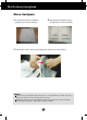 Monitoriaus prijungimas Stovo i‰ardymas 1. Ant plok‰ãio pavir‰iaus padòkite 2. Monitori˜ pastatykite ekranu Ïemyn pagalvòl´ ar mink‰tà skuduròl∞. ant pagalvòlòs ar mink‰to skuduròlio. 3. Paspauskite uωovà viduje. Stovo pagrindà nuimkite nuo stovo korpuso. Svarbu ·ioje iliustracijoje yra pavaizduota ∞prastinò aparato stovelio pritvirtinimo procedra. Taãiau js˜ aparatas gali skirtis nuo iliustracijoje parodyto monitoriaus.