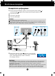 Monitoriaus prijungimas Prie‰ pastatant monitori˜, ∞sitikinkite, kad aparato, kompiuterio sistemos ir papildomos aparatros maitinimai yra i‰jungti. Monitoriaus pasvirimo kampo reguliavimas 1. Reguliuodami monitoriaus pasvirimo kampà, suraskite geriausià padòt∞. Pokrypio kampas : -3°~17° Pasukimas : 356° Auk‰tis: ne daugiau kaip 5,51 colio (140 mm) 140,0 mm * Prie‰ reguliuojant auk‰t∞, pra‰ome i‰imti Fiksavimo kai‰tel∞.