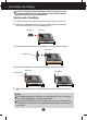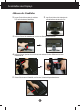 Installieren der Halterung für die Wandmontage Dieser Monitor erfüllt die Anforderungen für Wand- oder Wechselhalterungen. 1. Legen Sie ein Kissen oder ein weiches 2. Legen Sie den Monitor mit der Vorderseite nach Tuch auf eine ebene Oberfläche. unten auf das Kissen oder das weiche Tuch. 3. Drücken Sie auf die Kabelblende, um sie von Standfuß abzunehmen. 4. Drücken Sie die Sperrlasche nach innen und nehmen Sie den Ständersockel vom Ständerteil ab. 5.