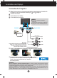 Anschließen des Displays Bevor Sie das Display in Betrieb nehmen, achten Sie darauf, dass die Stromversorgung zum Gerät, zum Computersystem und zu anderen angeschlossenen Geräten unterbrochen ist. Montieren des Standfußes 1. Legen Sie den Monitor mit der Vorderseite nach unten auf ein weiches Tuch. 2. Überprüfen Sie die Ausrichtung des (vorn, hinten) des Standfußes und befestigen Sie ihn am Scharnierkörper, wie in der Abbildung gezeigt. Ständerteil Gelenkteil 3.