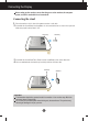 Connecting the Display Before setting up the monitor, ensure that the power to the monitor, the computer system, and other attached devices is turned off. Connecting the stand 1. Place the monitor with its front facing downward on a soft cloth. 2. Assemble the Stand Body into the product in the correct direction as shown in the picture. Make sure you push it until you hear it “click”. Hinge Body Stand Body 3. Assemble the Stand Base(Front, Rear) into the Stand Body in the correct direction. 4.