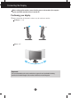 Connecting the Display Before setting up the monitor, ensure that the power to the monitor, the computer system, and other attached devices is turned off. Positioning your display 1. Adjust the position of the panel in various ways for maximum comfort. Tilt Range : -5˚~20˚ 20 Swivel : 355˚ Ergonomic It is recommended that in order to maintain an ergonomic and comfortable viewing position, the forward tilt angle of the monitor should not exceed 5 degrees.