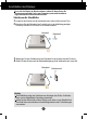 Anschließen des Displays Abbauen des Standfußes Typ B 1. Legen Sie ein Kissen oder ein weiches 2. Legen Sie den Monitor mit der Vorderseite nach Tuch auf eine ebene Oberfläche. 3. unten auf das Kissen oder das weiche Tuch. Halten Sie nun das Gerät wie in der Abbildung gezeigt fest, und drehen Sie den Ständersockel in Pfeilrichtung. 4. Nehmen Sie den Ständer vom Gerät ab. 5. 6.
