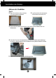 Anschließen des Displays Abbauen des Standfußes Typ A 1. Legen Sie ein Kissen oder ein weiches 2. Legen Sie den Monitor mit der Vorderseite nach Tuch auf eine ebene Oberfläche. unten auf das Kissen oder das weiche Tuch. 3. Drücken Sie die Sperrlasche nach innen und nehmen Sie den Ständersockel vom Ständerteil ab. 4. Verwenden Sie einen Schraubendreher zum Abbau des Ständers (siehe Abbildung). Anmerkung: Bitte bewahren Sie die 4 Schrauben für den späteren Gebrauch sicher auf. 5.