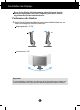 Anschließen des Displays Bevor Sie das Display in Betrieb nehmen, achten Sie darauf, dass die Stromversorgung zum Gerät, zum Computersystem und zu anderen angeschlossenen Geräten unterbrochen ist. Montieren des Standfußes 1. Legen Sie den Monitor mit der Vorderseite nach unten auf ein weiches Tuch. 2. Montieren Sie das Ständerteil am Produkt in der in der Abbildung gezeigten Richtung. Drücken Sie es hinein, bis es hörbar einrastet. Gelenkteil Ständerteil 3.
