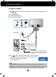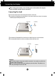 Connecting the speakers - The feature is only for speaker models - L226WTM Connecting the speaker 1. Place the monitor with its front facing downward on a soft cloth. 2. Insert the protruding hook of the speaker in the direction of the slot in the back of the product. Slot Hook Audio DC-In Cable AUDIO IN 3. After setting up the speaker, connect the Audio DC-In Cable to the back of the product.
