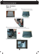 Monitoriaus prijungimas Stovo i‰ardymas Tipas. A 1. Ant plok‰ãio pavir‰iaus padòkite 2. Monitori˜ pastatykite ekranu Ïemyn pagalvòl´ ar mink‰tà skuduròl∞. ant pagalvòlòs ar mink‰to skuduròlio. 3. Paspauskite uωovà viduje. Stovo pagrindà nuimkite nuo stovo korpuso. 4. Stovà atskirkite atsuktuvo pagalba, kaip parodyta pavyzdyje. Pastaba: pra‰ome ‰iuos 4 varÏtus saugoti pasiekiamoje vietoje ateiãiai. 5. Supakuokite gamin∞ kaip parodyta pavyzdyje.