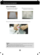 Monitoriaus prijungimas Stovo i‰ardymas 1. Ant plok‰ãio pavir‰iaus padòkite 2. Monitori˜ pastatykite ekranu Ïemyn pagalvòl´ ar mink‰tà skuduròl∞. ant pagalvòlòs ar mink‰to skuduròlio. 3. Paspauskite uωovà viduje. Stovo pagrindà nuimkite nuo stovo korpuso. Svarbu ·ioje iliustracijoje yra pavaizduota ∞prastinò aparato stovelio pritvirtinimo procedra. Taãiau js˜ aparatas gali skirtis nuo iliustracijoje parodyto monitoriaus.