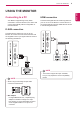 USING THE MONITOR 9 USING THE MONITOR Your Monitor supports Plug & Play. When connected to a PC and turned on, the device will connect automatically without configuration or user intervention. HDMI connection Transmits the digital video and audio signals from your PC or A/V to the Monitor. Connect the PC or A/V and the Monitor with the HDMI cable as shown in the following illustrations. D-SUB connection Transmits analog video from your PC to the Monitor set.
