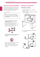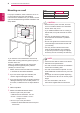 6 ASSEMBLING AND PREPARING ENGLISH ENG Moving and Lifting the Monitor Setting up the Monitor When moving or lifting the monitor, follow these instructions to prevent the monitor from being scratched or damaged and to ensure safe transportation regardless of its shape or size. Mounting on a table CAUTION 1 Lift and tilt the Monitor set into its upright position on a table. Leave a 10 cm (minimum) space from the wall for proper ventilation. As much as possible, avoid touching the yy monitor screen.