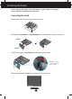 Connecting the Display Before setting up the monitor, ensure that the power to the monitor, the computer system, and other attached devices is turned off. Connecting the stand 1. Place the monitor face down on the cushion or soft cloth. 2. Assemble the Stand Base into the Stand Body in the correct direction as shown in the picture. Stand Body Stand Base 3. Attach the monitor to the Stand Base by turning the screw to the right. Screw : Turn the screw by using the screw handle. 4.