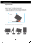 Connecting the Display Using the Pivot function 1. Lift the monitor to its highest height to utilize the Pivot function. 2. Landscape & Portrait : You can rotate the panel 90 o clockwise. Please be cautious and avoid contact between the monitor head and the Stand Base when rotating the screen to access the Pivot function. If the monitor head touches the Stand Base, then the Stand Base could crack. Head section Stand section 3. For detailed information, please refer to the Pivot Software CD provided.