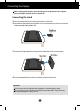 Connecting the Display To remove the Stand: 1. Put a cushion or soft cloth on a flat surface. 2. Place the monitor face down on the cushion or soft cloth. The Head part The Stand base part 3. Hold the product as it follows and lift up the Stand slightly. 4. Change your hold on the product as it follows and turn the Stand Base in the arrow direction until you hear a "click." 5. Pull out the Stand to remove.