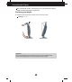 Connecting the Display Disassembling the stand 1. Put a cushion or soft cloth on a flat 2. Place the monitor face down on surface. 3. the cushion or soft cloth. Change your lock on the product as it follows and turn it in the arrow direction. If you can't release the stand base even the locking rib is at a release position, Please push the indicated rib down and retry it. 4. Pull out the stand to remove.