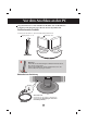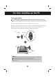 Vor dem Anschluss an den PC Montage des Ständers Bevor Sie das Display in Betrieb nehmen, achten Sie darauf, dass die Stromversorgung zum Gerät, zum Computersystem und zu anderen angeschlossenen Geräten unterbrochen ist. 1. Legen Sie den Monitor mit der Vorderseite nach unten auf ein Kissen oder ein weiches Tuch. 2. Halten Sie das Ständerteil und den Standsockel fest und drücken Sie die Riegel in Richtung der jeweiligen Enden. 3.