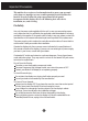 Troubleshooting Have you installed the display driver? Have you installed the display driver? Be sure to install the display driver from the display driver CD (or diskette) that comes with your display. Or, you can also download the driver from our web site: http://www.lge.com. Do you see an "Unrecognized monitor, Plug&Play (VESA DDC) monitor found" message? Make sure to check if the video card supports Plug&Play function. Audio function No sound. Check if the audio cable is correctly connected.