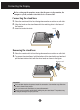 Connecting the Display Bottom PC AUDIO Headphone/Earphone Input Automatically mutes the speaker volume when the headphones are plugged in. Audio Input Connects to the *LINE OUT jack of the PC sound card. Speaker Out *Line Out *LINE OUT A terminal used to connect to the speaker including a built-in amplifier (Amp). Make sure that the connecting terminal of the PC sound card is checked before connecting. If the Audio Out of PC sound card has only Speaker Out, reduce the PC volume.