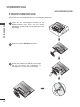 VORBEREITUNG STANDFUSS ENTFERNEN ■■ Die Form Ihres Fernsehgeräts kann von der Abbildung abweichen. VORBEREITUNG 12 1 Legen Sie das Fernsehgerät mit dem Bildschirm nach unten auf ein Kissen oder weiches Tuch. 2 Drehen Sie die Schraube auf der Unterseite des Standfußes gegen den Uhrzeigersinn, um den Standfuß zu lösen. Verwenden Sie dazu eine Münze. 3 Ziehen Sie den Standfuß ab.