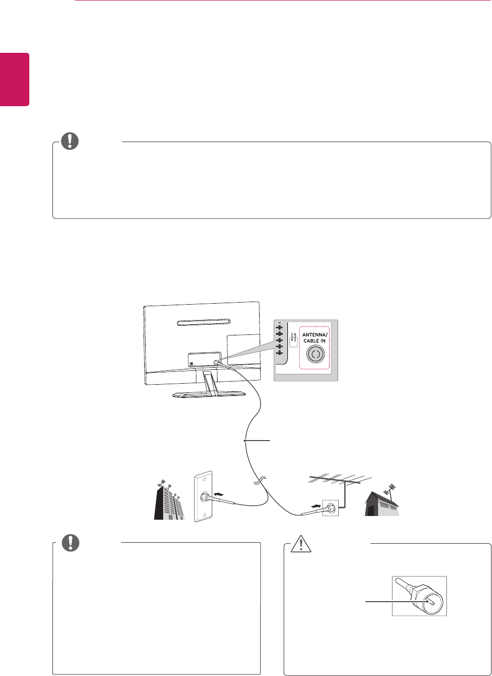 Connect an antenna, cable or cable box to watch TV referring to the following. The illustrations may differ