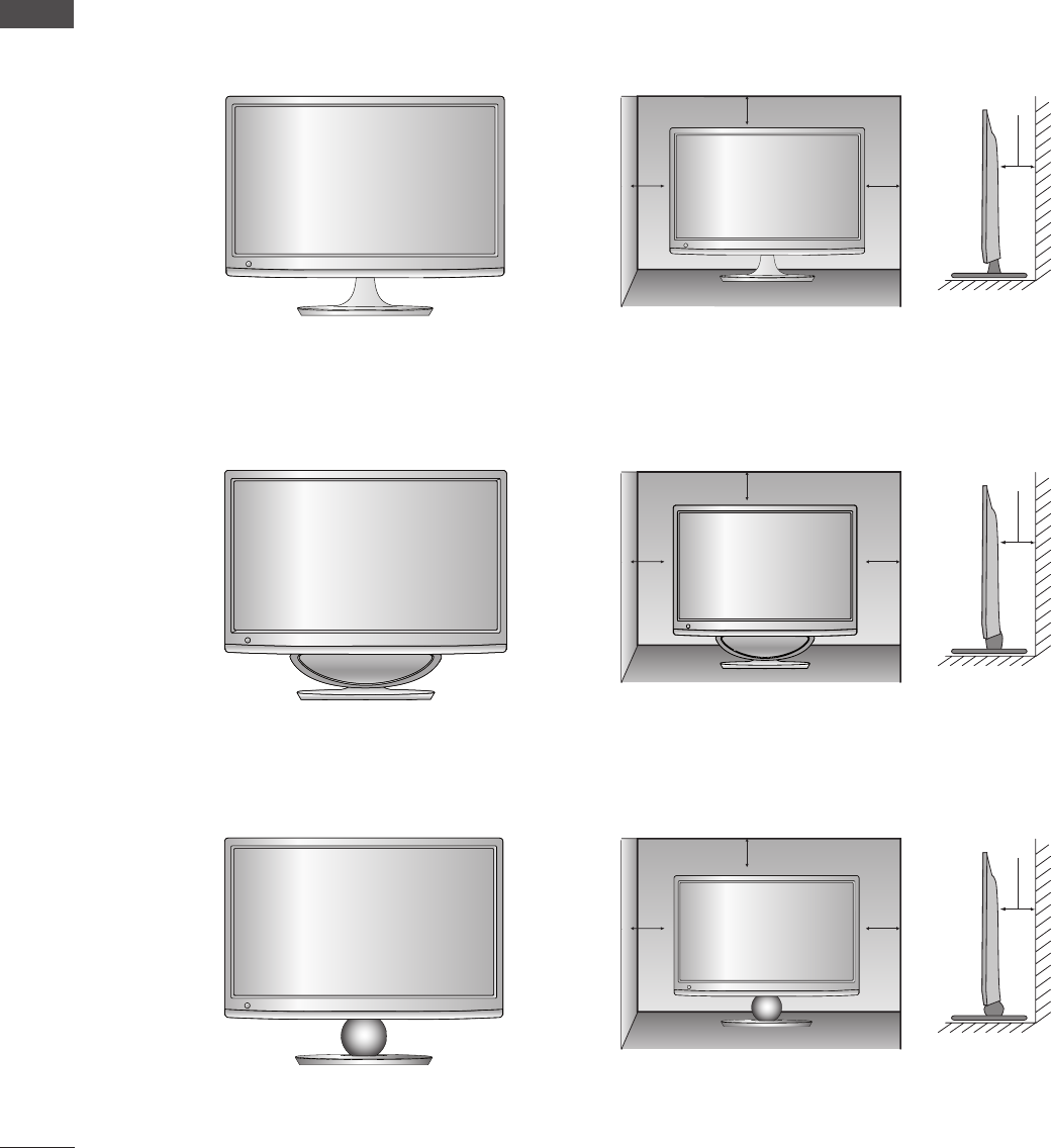 Siekdami užtikrinti tinkamą vėdinimą, iš visų pusių ir nuo sienos palikite 10 cm tarpus.
