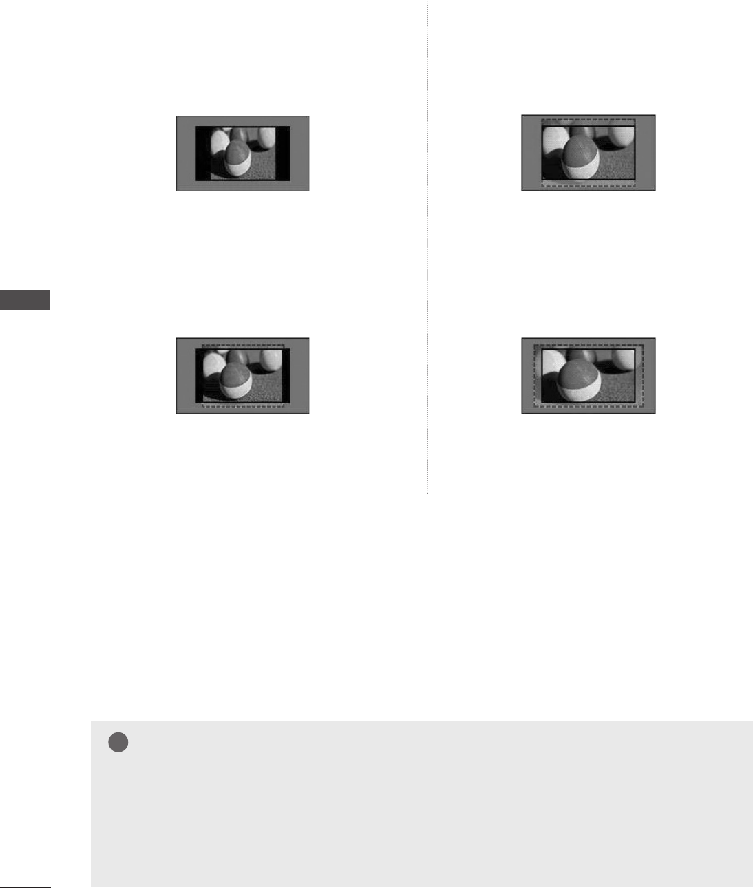 ►HDMI režimu galite pasirinkti tik 4:3, Pradinis, 16:9 (Platus) 14:9, Mastelis / Kino mastelis.