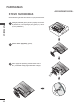 PARENGIMAS STOVO ATJUNGIMAS ■■ Paveikslėlis gali šiek tiek skirtis nuo jūsų televizoriaus. PARENGIMAS 12 1 Padėkite televizorių ekranu į apačią ant minkšto pagrindo ar švelnaus audinio. 2 Atkabinkite monitorių nuo stovo pagrindo sukdami varžtą į kairę. Varžtą sukite naudodamiesi moneta. 3 Ištraukite stovo pagrindą.