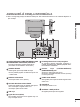 PIESTIPRINĀŠANA PIE SIENAS: PIESTIPRINĀŠANA HORIZONTĀLI Lai nodrošinātu labu ventilāciju, televizora abās pusēs un no sienas atstājiet 10 cm lielu atstarpi. Detalizētas piestiprināšanas instrukcijas varat saņemt no sava izplatītāja; sk. papildu materiālu “Slīpās sienas montāžas kronšteina novietošanas un piestiprināšanas instrukcija”. 10 cm 10 cm 10 cm SAGATAVOŠANĀS 10 cm 10 cm Ja plānojat stiprināt televizoru pie sienas, tā aizmugurē uzstādiet sienas montāžas mehānismu (papildu detaļas).