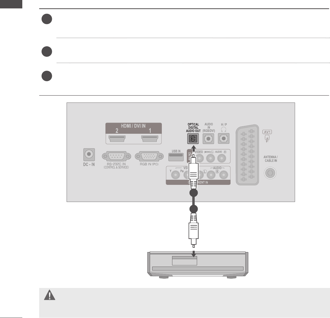 ►Nežiūrėkite į optinės išvesties prievadą. Žiūrėjimas į lazerio spindulį gali pakenkti regėjimui.