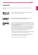 LICENCES 5 Atbalstītas licences var atšķirties atbilstoši modelim. Lai uzzinātu vairāk par licencēm, apmeklējiet www.lg.com. Ražots, izmantojot licenci no Dolby Laboratories. "Dolby" un dubultā D simbols ir "Dolby Laboratories" preču zīmes. HDMI, HDMI logotips un High-Definition Multimedia Interface ir HDMI Licensing LLCpreču zīmes vai reģistrētās preču zīmes. PAR DIVX VIDEO: DivX® ir ciparu videoformāts, ko izstrādājis uzņēmums DivX, Inc. Šī ir oficiāla DivX sertificēta ierīce, kas atskaņo DivX video.