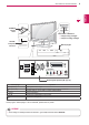 SAVIENOJUMU VEIDOŠANA 71 Pievienojiet dažādas ārējās ierīces monitoram un pārslēdziet ievades signāla režīmus, lai izvēlētos ārējo ierīci. Lai uzzinātu vairāk par ārējās ierīces pievienošanu, skatiet katras ierīces komplektācijā iekļauto rokasgrāmatu. Pievienojamās ārējās ierīces ir šādas: HD uztvērēji, DVD atskaņotāji, videomagnetofoni, audiosistēmas, USB atmiņas ierīces, dators, videokameras vai fotokameras, spēļu ierīces un citas ārējās ierīces. PIEZĪME.