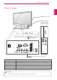 MONTĀŽA UN SAGATAVOŠANA 7 Detaļas un pogas LATVIEŠU Tālvadības pults sensors Gaidstāves indikators Iedegts: izslēgta yy Nodzisis: ieslēgta yy Skārienpogas Savienojumu panelis (Sk. lpp. 20) Skārienpoga Apraksts Ritina saglabātās programmas. Regulē skaļuma līmeni. OK Atlasa iezīmēto izvēlnes iespēju vai apstiprina ievadi. SETTINGS Atver galvenās izvēlnes vai saglabā ievadīto informāciju un aizver izvēlnes. INPUT Maina ievades avotu. Ieslēdz un izslēdz strāvu.