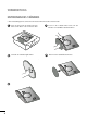 VORBEREITUNG HERAUSKLAPPEN DES STANDFUßES ■ Diese Darstellung könnte sich leicht vom Aussehen Ihres Fernsehers unterscheiden. 1 Legen Sie das Produkt vorsichtig mit dem Bildschirm nach unten auf eine weiche Oberfläche, durch die das Produkt und der Bildschirm vor Beschädigungen geschützt wird. 2 Setzen Sie den Standfußsockel in das Gerät ein. 3 Ziehen Sie die Schraube rechts herum fest, um den Monitor am Standfußsockel zu befestigen. * Schraube am Schraubengriff drehen.
