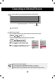 Connecting to External Devices 1 Turn on power by pressing the power button on the product. INPUT AUTO/SET Power button 2 Turn on the PC. Select an input signal. Press the INPUT button on the remote control to select the input signal. INPUT SET Or, press the INPUT botton on the bottom of the product. INPUT AUTO/SET A When connecting with a D-Sub signal input cable. • Select RGB PC : 15-pin D-Sub analog signal. B When connecting with a HDMI to DVI signal input cable.