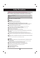 Safety Precautions Electrical Power Related Precautions Warning Make sure to connect the power cable to the grounded current. - You may be electrocuted or injured. Use the rated voltage only. - The product can be damaged, or you may be electrocuted. In the presence of thunder and lightning, never touch the power cord and signal cable because it can be very dangerous. - It can cause electric shock. Do not connect several extension cords, electrical appliances or electrical heaters to a single outlet.