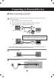 Connecting to External Devices HDMI Input (480p/576p/720p/1080i/1080p) HDMI Supports High Definition input and HDCP (High-bandwidth Digital Content Protection). Some devices require HDCP in order to display HD signals. 1 Connect the video/audio cable as shown in the below figure and then connect the power cord (See page 10).