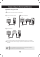 Connecting to External Devices When Connecting to your PC First of all, see if the computer, product and the peripherals are turned off. Then, connect the signal input cable. A When connecting with the D-Sub signal input cable. B When connecting with the HDMI to DVI signal input cable (not included). * When HDMI PC is used, a compatiblity problem might occur. A PC Rear side of the product.