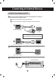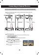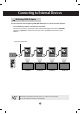 Connecting to External Devices Watching AV Outputs • When you set the input signal of the main screen as 'AV (CVBS)', you can transmit the signal that you're watching to the AV output terminal. Video/TV BNC Cable (not included) Audio Cable (not included) AV IN L-AUDIO-R VIDEO Product S-VIDEO AV OUT BNC Cable (not included) Audio Cable (not included) Video/TV Note • When multi-connecting in/out cascade format, no loss cables are recommended. We recommend that you should use cable distributor.