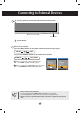 Connecting to External Devices 1 Turn on power by pressing the power button on the product. SOURCE AUTO/ SET ON/OFF Power button 2 Turn on the PC. Select an input signal. Press the INPUT button on the remote control to select the input signal. INPUT SET Or, press the SOURCE button on the bottom of the product. SOURCE AUTO/SET Input A When connecting with a D-Sub signal input cable. • Select RGB : 15-pin D-Sub analog signal. B When connecting with a HDMI to DVI signal input cable.