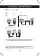 Connecting to External Devices Watching AV Outputs - When using AV input, you can connect the AV Out to other monitors. Video / TV BNC Cable (not included) Audio Cable (not included) Product BNC Cable (not included) Audio Cable (not included) Video / TV Note • When multi - connecting in / out cascade format, no loss cables are recommended. We recommend that you should use cable distributor.