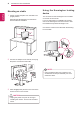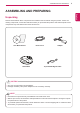 ASSEMBLING AND PREPARING 3 ASSEMBLING AND PREPARING ENG English Unpacking Please check whether all the components are included in the box before using the product. If there are missing components, contact the retail store where you purchased the product. Note that the product and components may look different from those shown here. User Manual/Card Stand Base Power Cord Adaptor 15-pin D-SUB Signal Cable CAUTION Only use an approved LG power adapter.